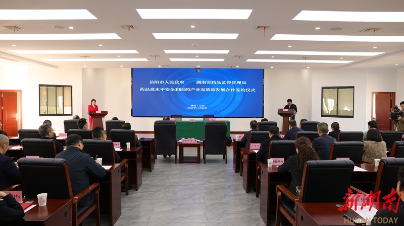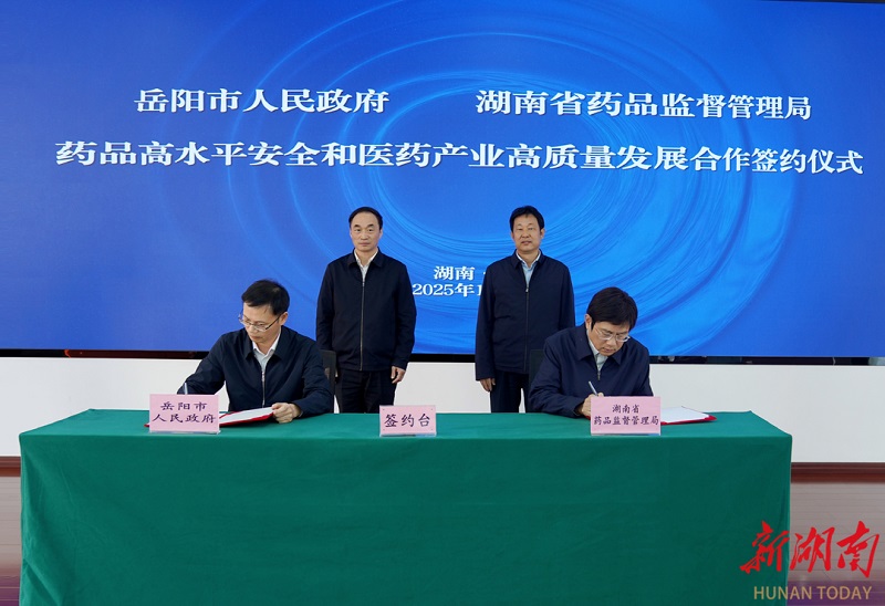 湖南日报·新湖南客户端11月22日讯(全媒体记者 龚雅丽 通讯员 全睿)11月21日,省药品监督管理局与岳阳市人民政府药品高水平安全和医药产业高质量发展合作签约仪式暨岳阳市药品审评核查中心揭牌仪式在岳阳举行。省市场监管局党组成员、省药品监管局党组书记、局长欧阳志刚,岳阳市委副书记、市长李挚出席活动并讲话。